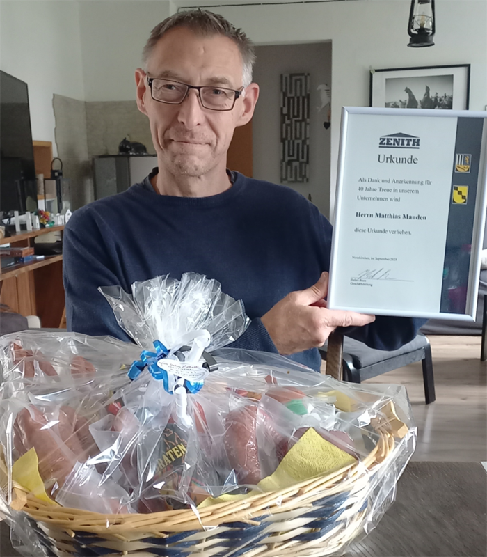 同樣迎來(lái)三十周年紀(jì)念的還有Mr.Markus Türk,現(xiàn)年47歲。他在策尼特完成了為期三年的工業(yè)文員培訓(xùn),現(xiàn)任備件銷售部門主管。多年來(lái),他憑借扎實(shí)的業(yè)務(wù)能力與責(zé)任心,為全球客戶提供高效的售后支持,確保公司服務(wù)體系的高質(zhì)量運(yùn)轉(zhuǎn)。