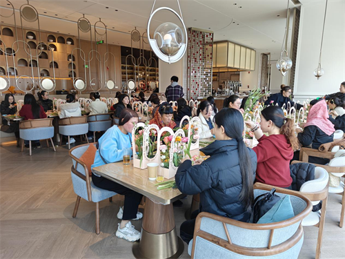 活動現(xiàn)場也為大家準備了精致的下午茶。精美的茶點、香濃的咖啡,搭配上親手制作的插花作品,讓每一位女性員工都感受到了公司對她們的關懷與尊重。大家在輕松愉悅的氛圍中,分享著彼此的插花作品和烘焙成果,臉上洋溢著幸福的笑容。